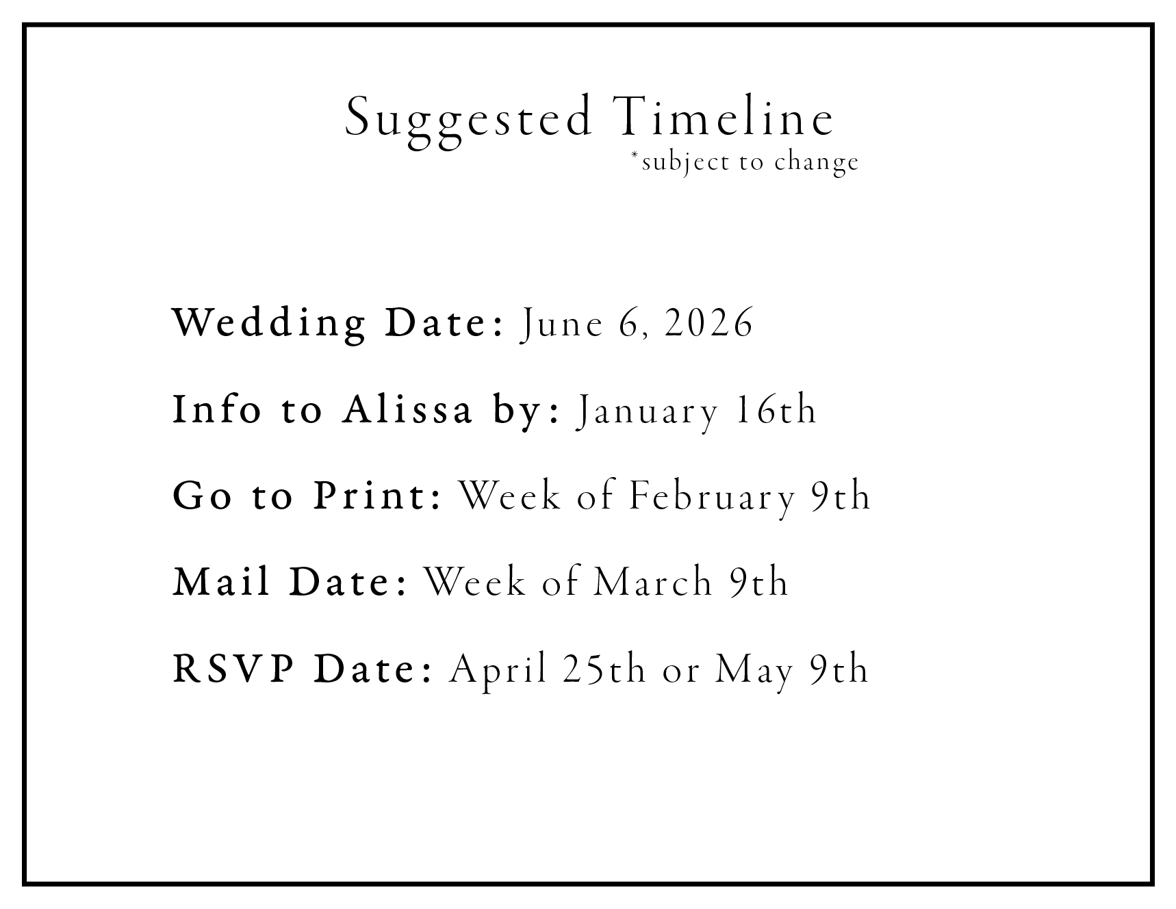 Below is a form filled with all of the information I will need from you to get started on your invitations. Please fill it out the best you can, and know nothing is set in stone — we can make changes along the way to any of the information you provide!